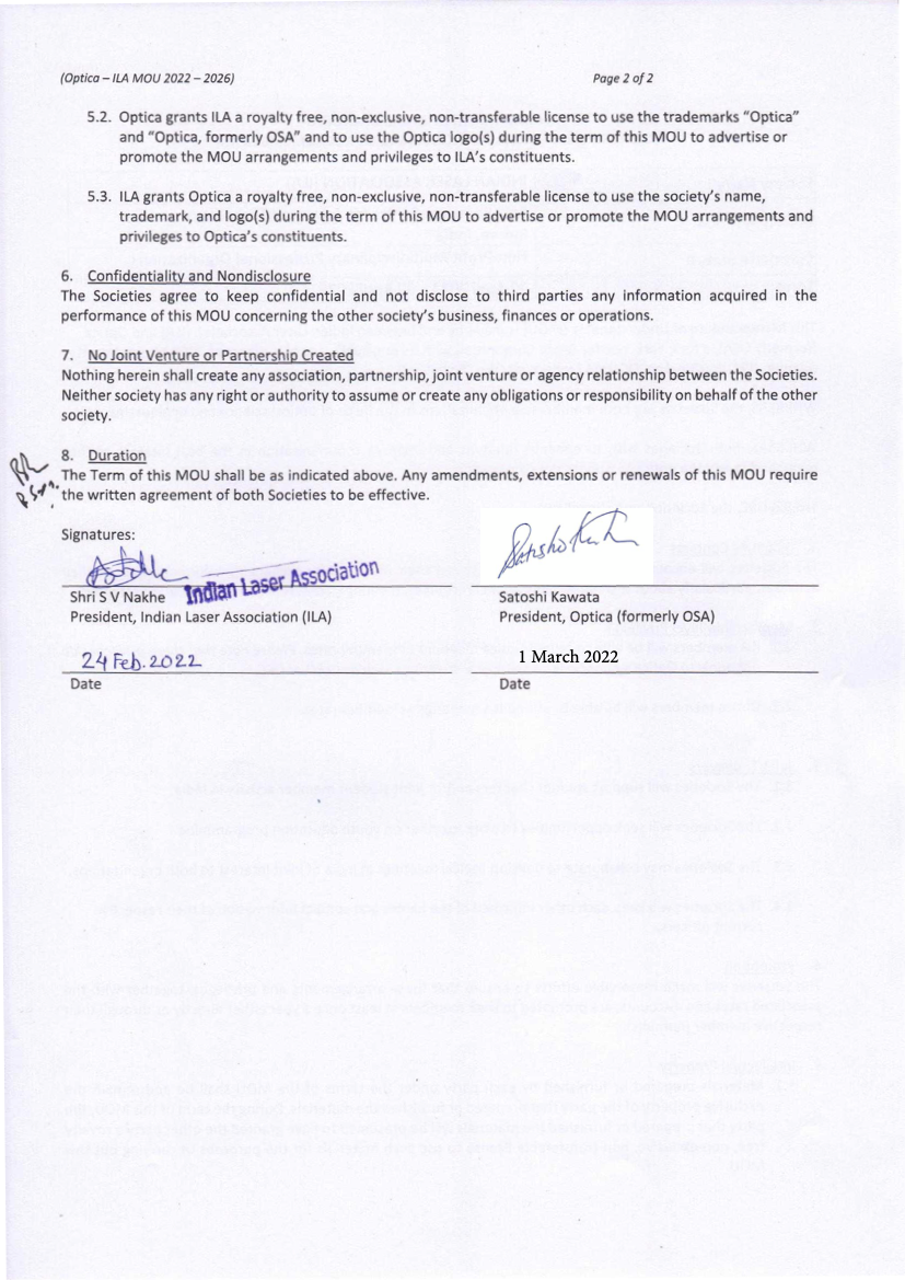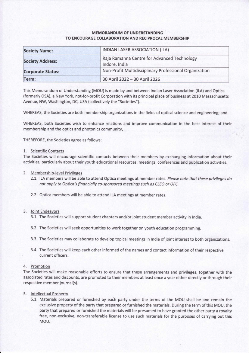 ILA Optica MOU 2022-2026